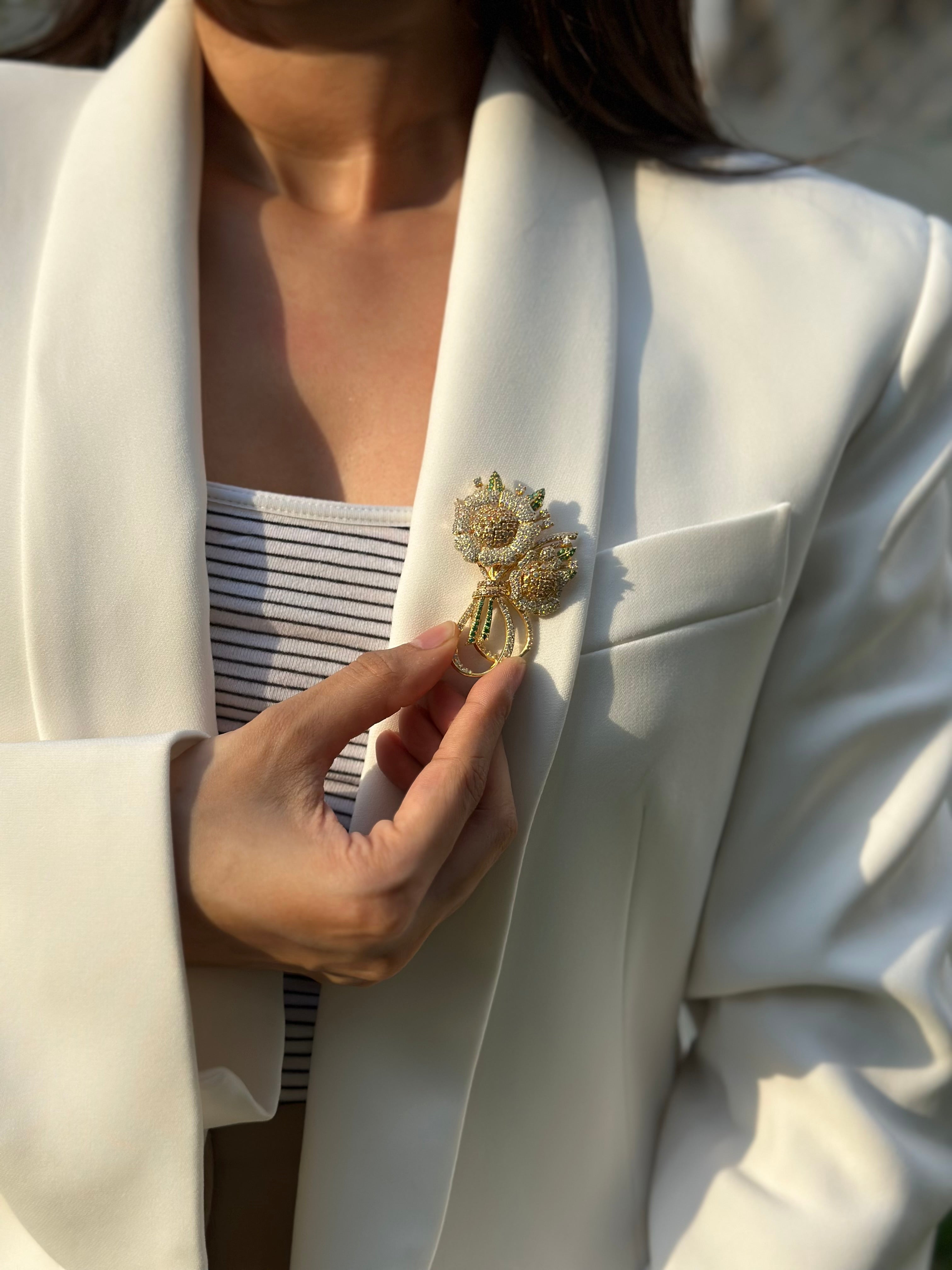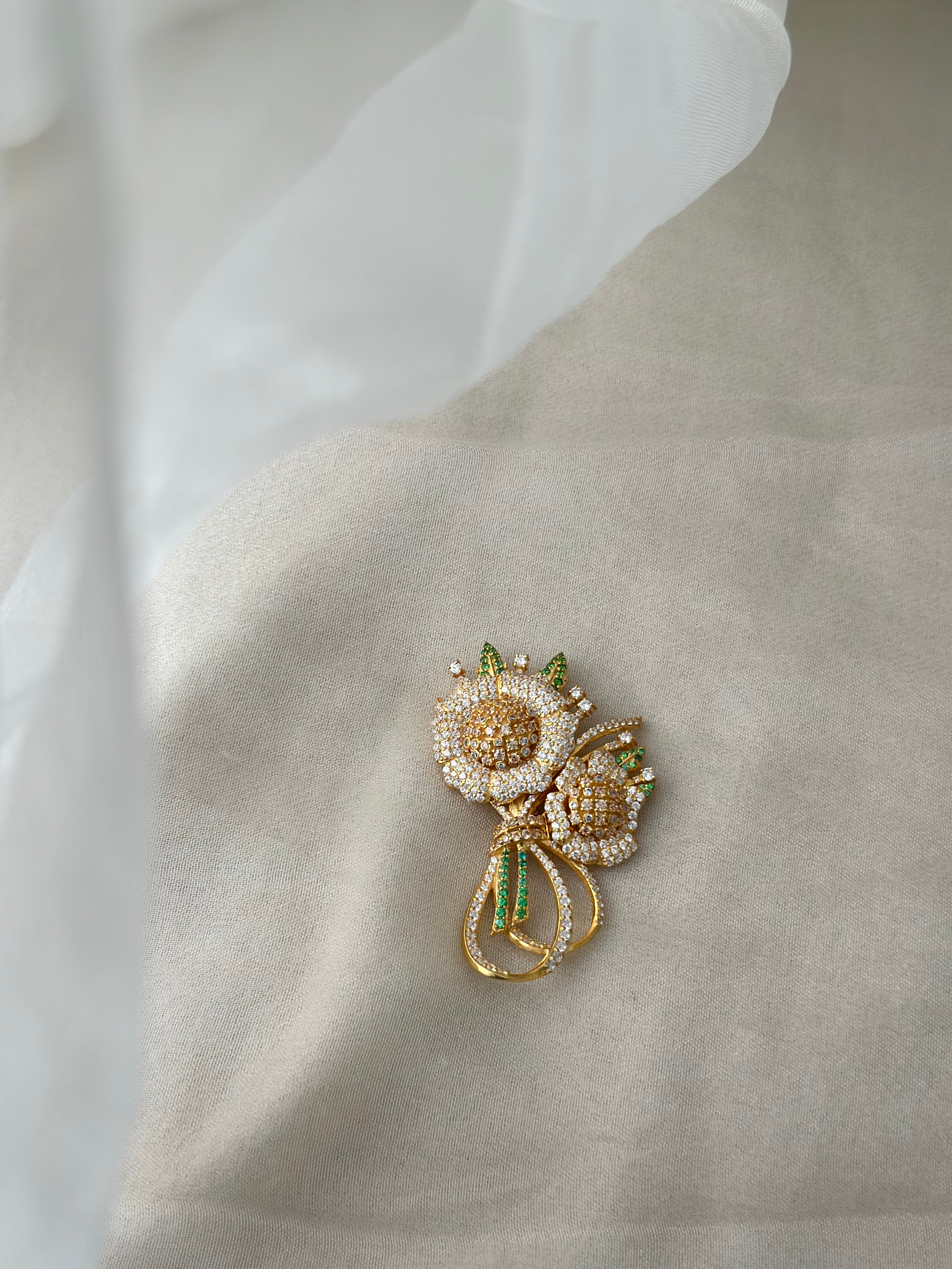 This one-of-a-kind, ready-to-ship brooch is a statement piece that enhances any outfit, from traditional sarees and lehengas to contemporary ensembles, making it ideal for weddings, festivals, and special occasions.