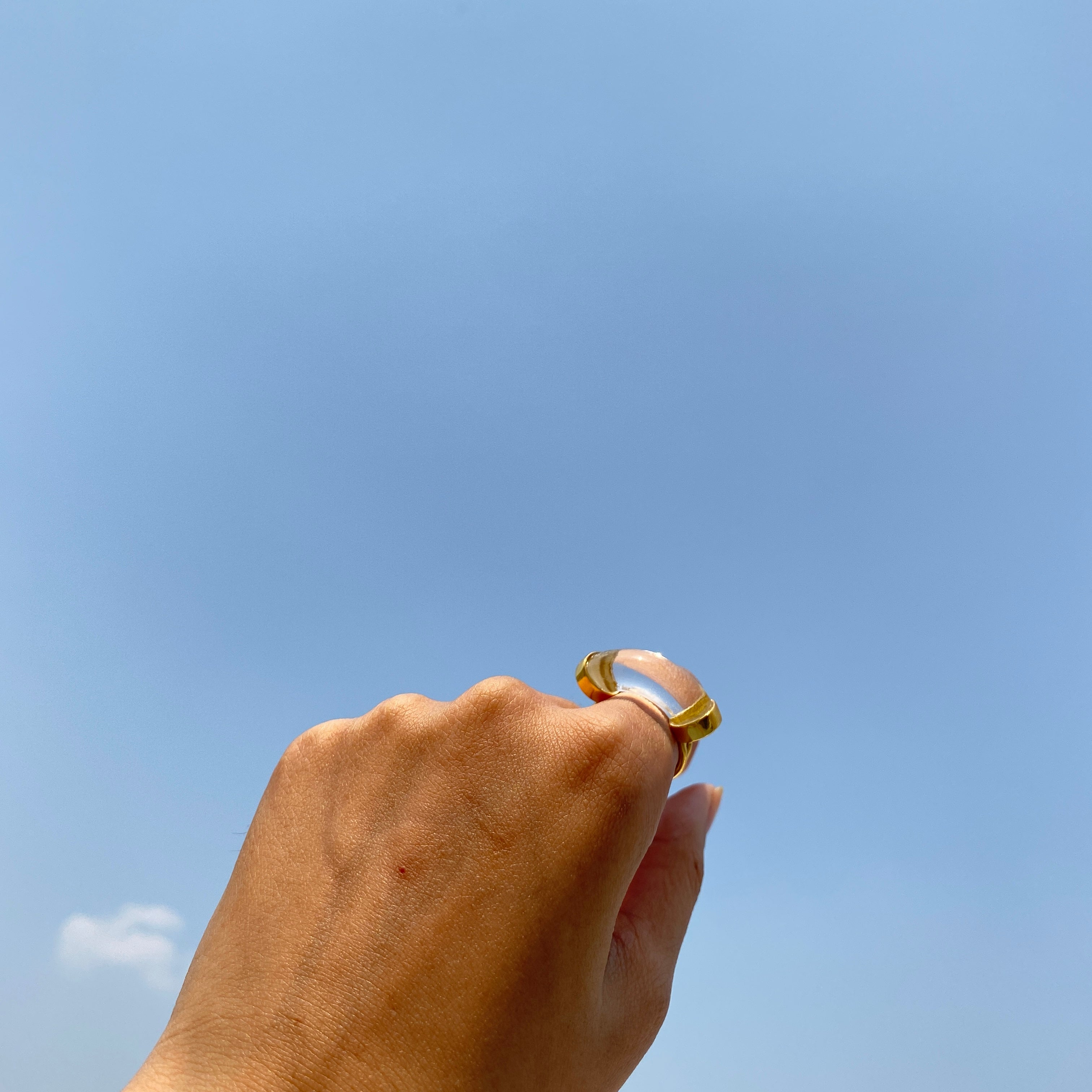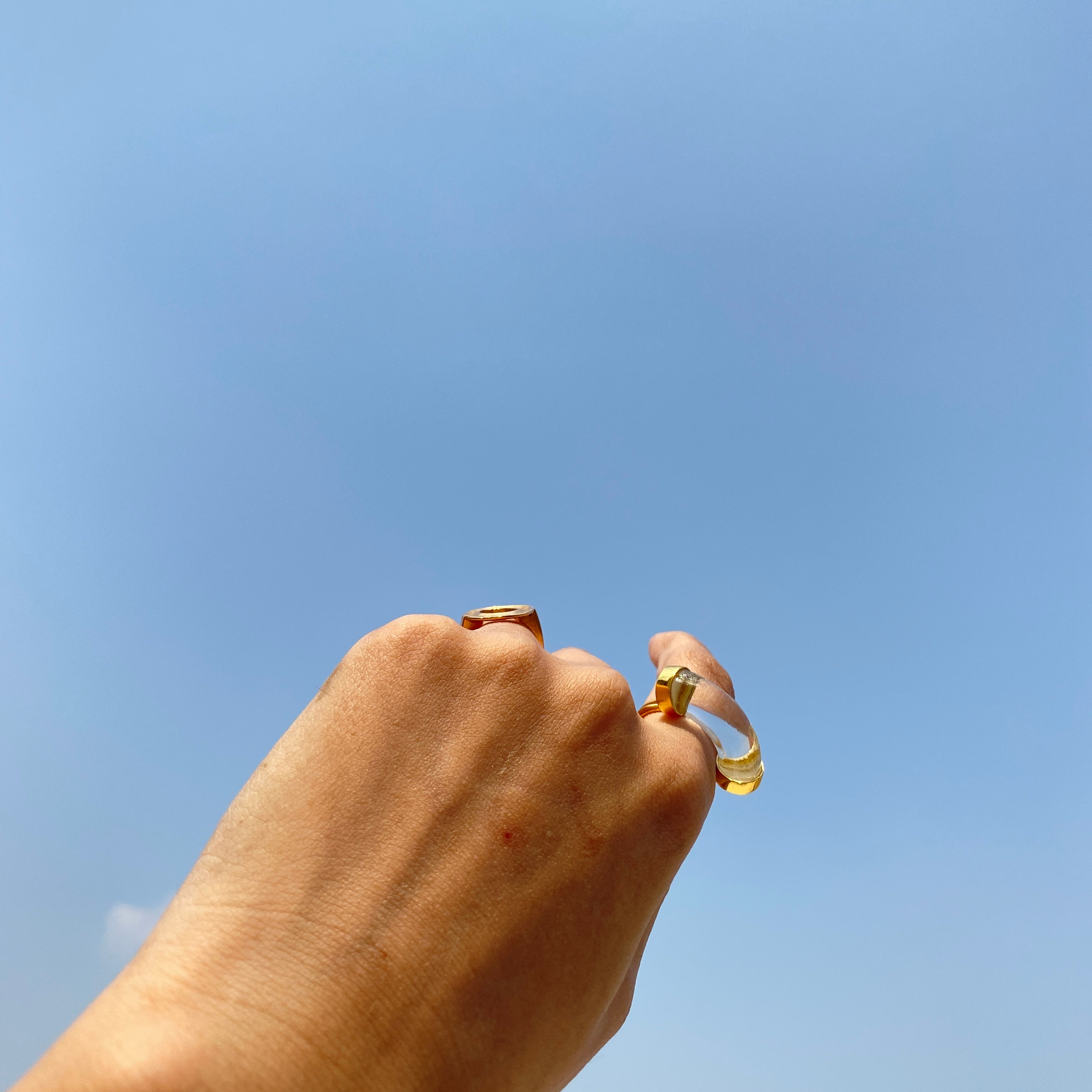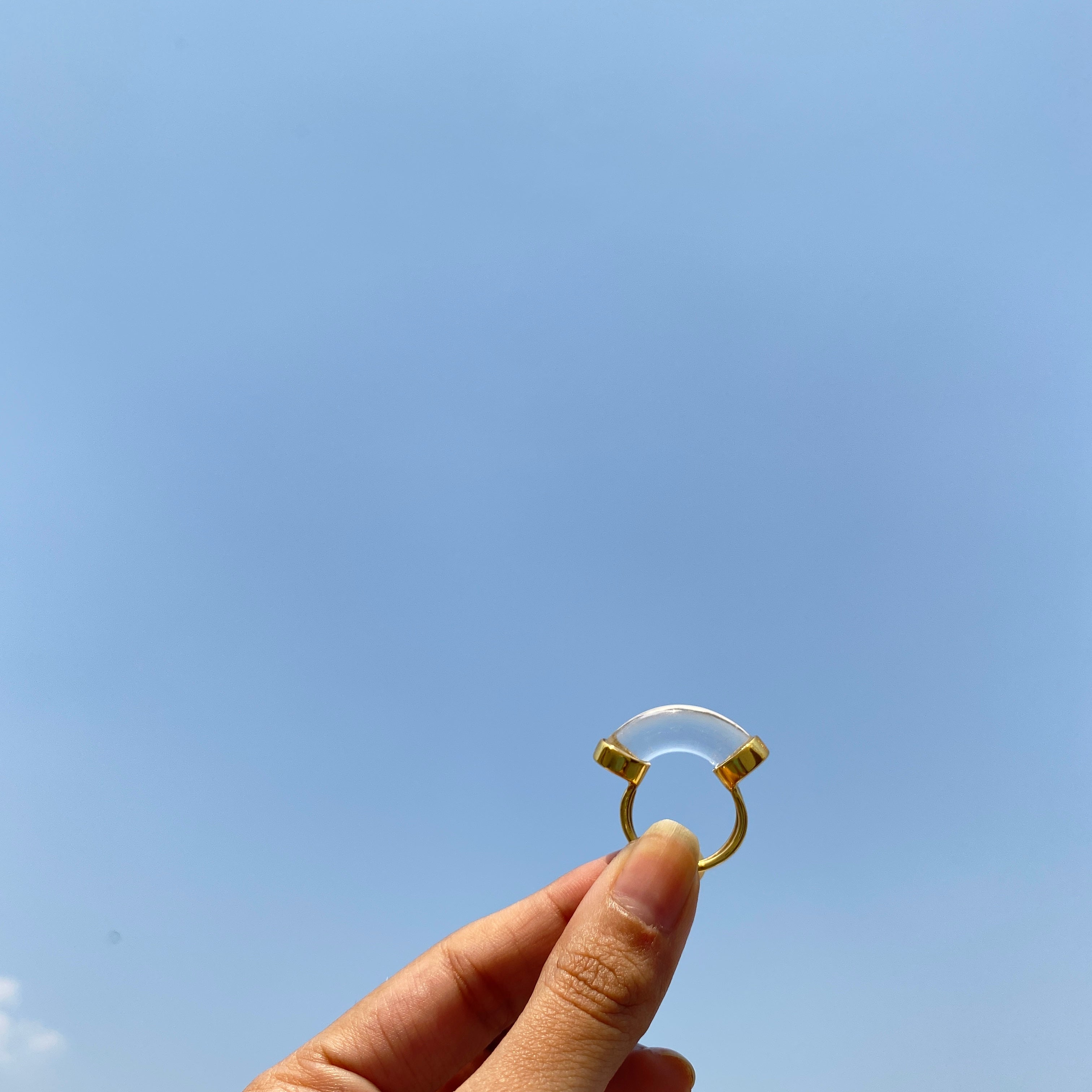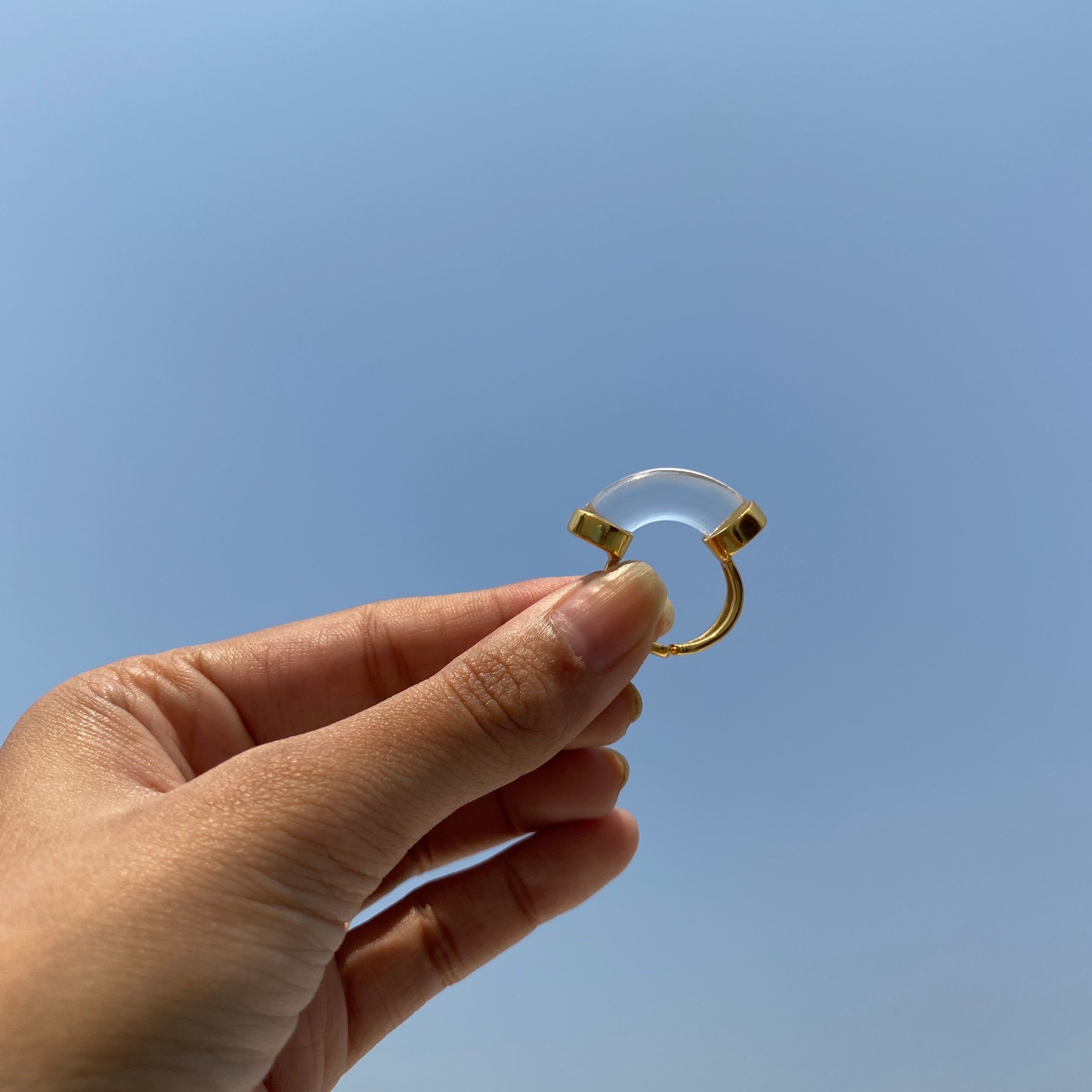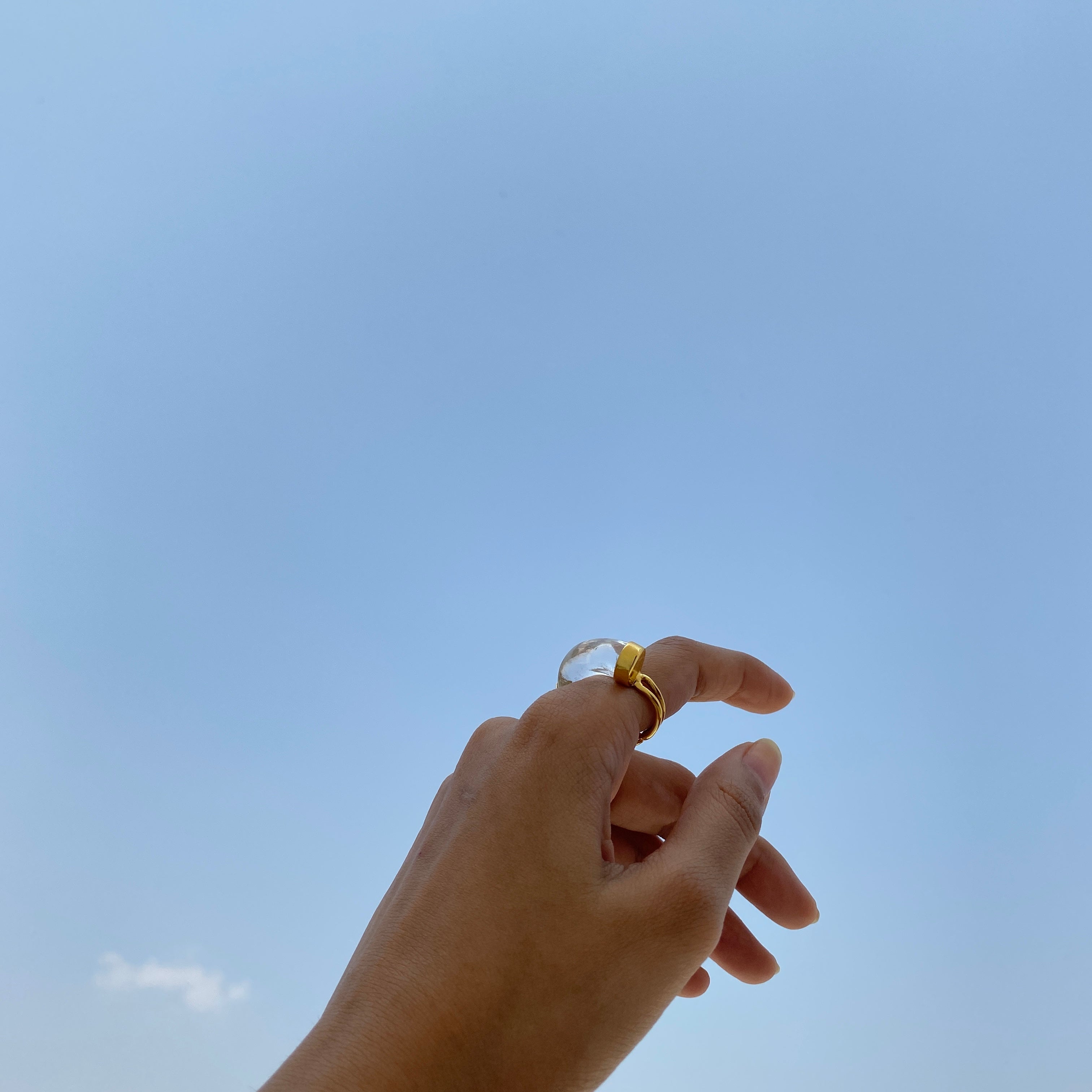 Crafted in hallmarked 92.5 fine silver and finished with elegant gold plating, this adjustable ring features a luminous clear quartz gemstone that captures light with every move. Designed for those who love understated glamour, it's the perfect accessory to elevate everything from candlelit dinners to casual brunches.