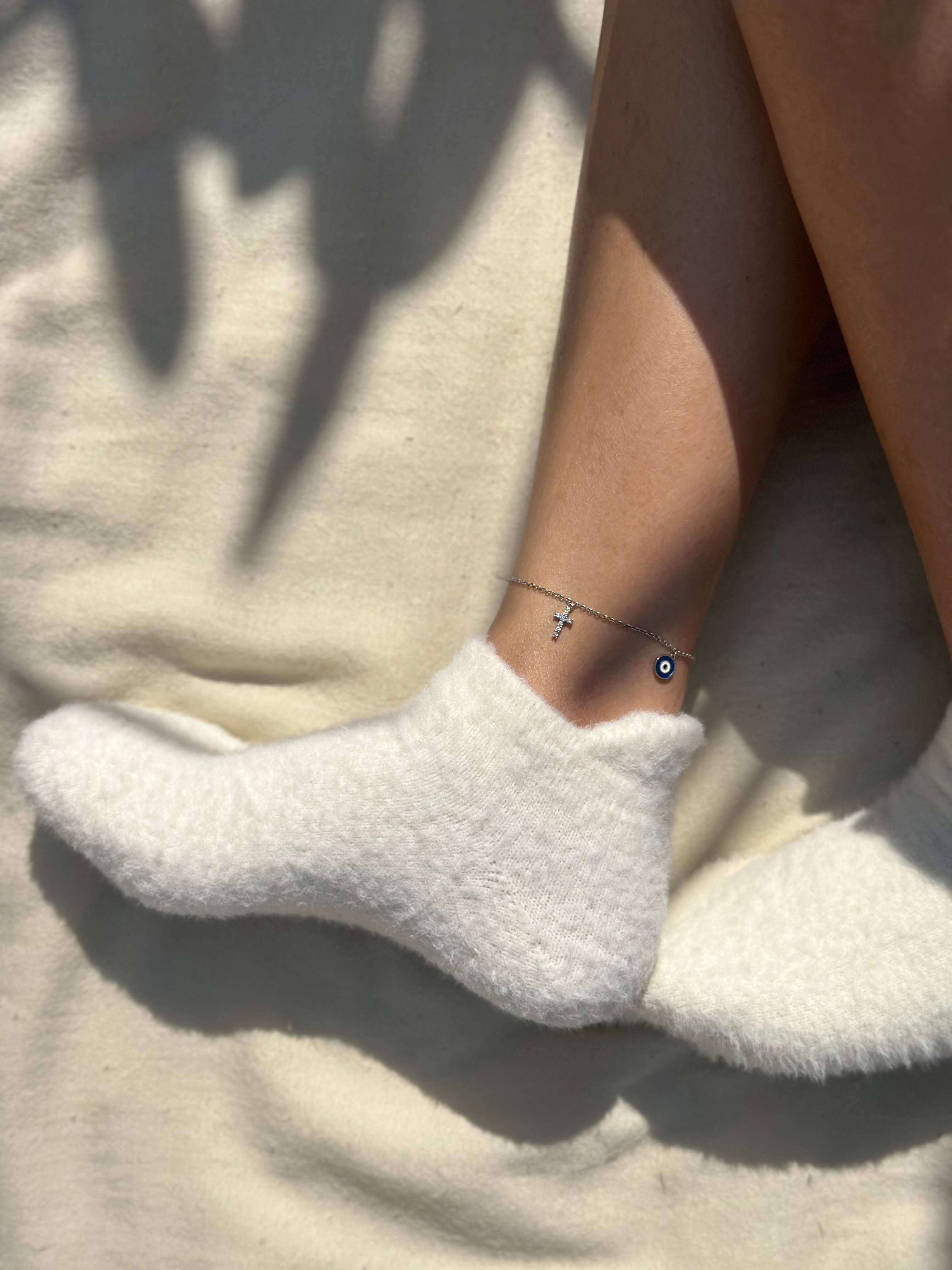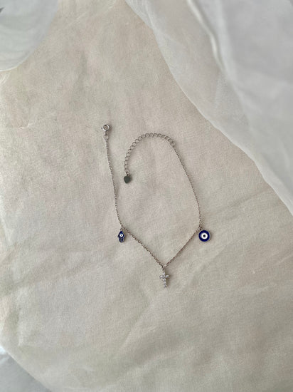 Accented with sparkling Swarovski cubic zirconia and finished with elegant blue enamel detailing, this anklet offers a perfect blend of modern charm and spiritual elegance. The 8 inch length with an additional 2.5 inch adjustable extension ensures a comfortable, customised fit for all-day wear.