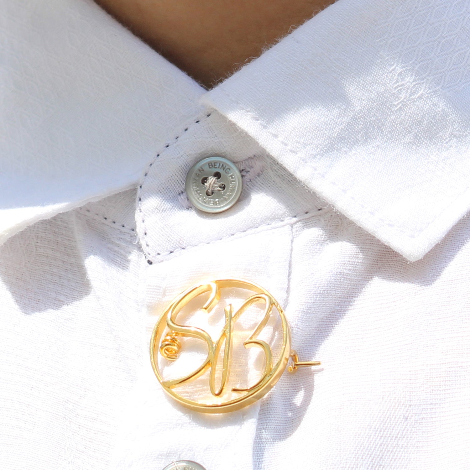 Add a distinctive touch to your outfit with this Custom Monogram Brooch, expertly handcrafted from hallmarked 92.5 fine sterling silver and finished with a lustrous gold plating. Whether pinned to a blazer, saree, scarf, or bag, this versatile brooch is a stylish expression of identity, elegance, and craftsmanship.