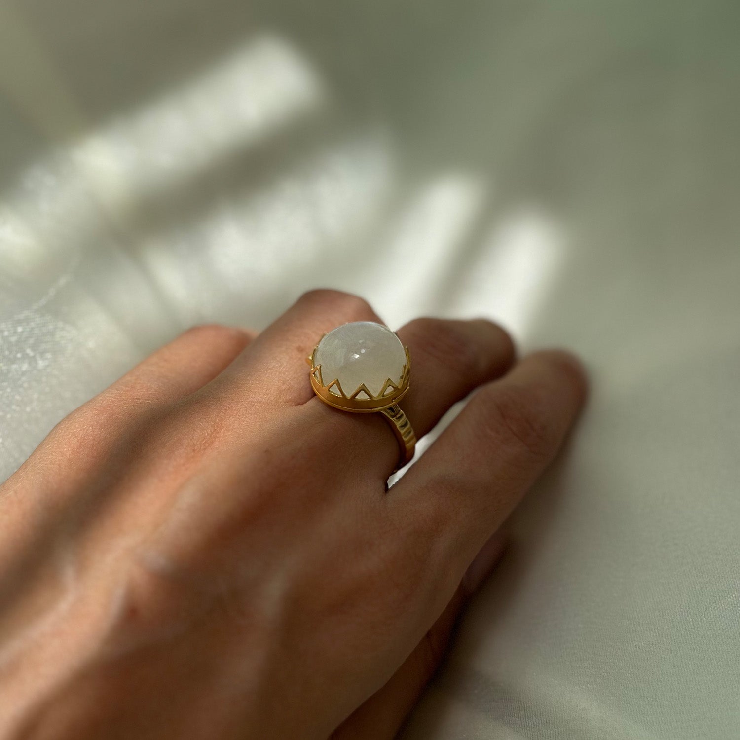 Keep your cherished memories close with this stunning Adjustable Moonstone Pendant Ring, crafted in 92.5 Fine Silver, Gold Plated and hallmarked for authenticity and quality. Featuring a delicate circle diameter of 1.6 cm and a luminous moonstone gemstone measuring 1.4 cm, this ring combines celestial beauty with personal meaning.