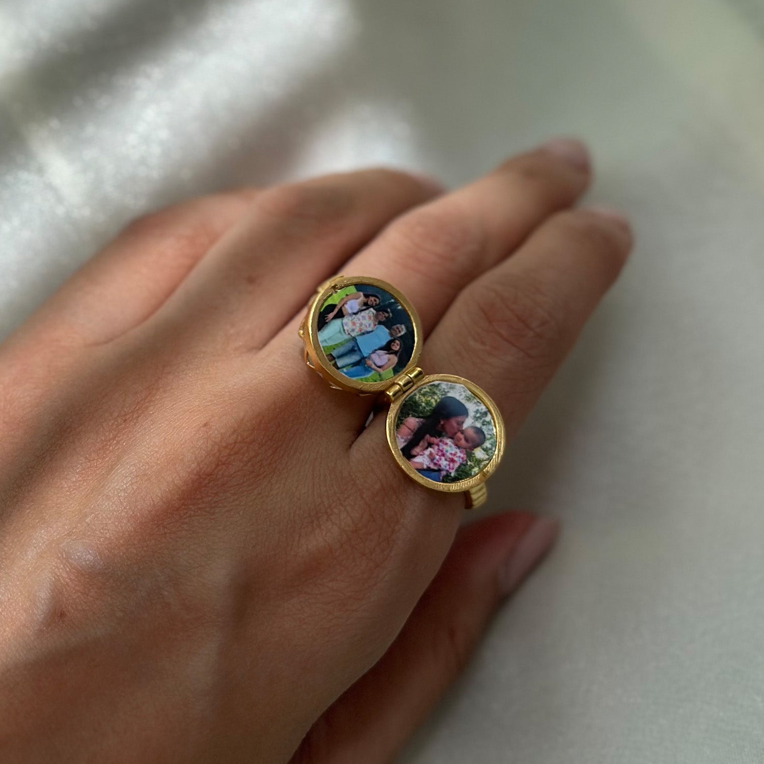 What sets this ring apart is its unique openable pendant design, allowing you to customize it by adding photos on both sides—making it a truly intimate keepsake or a heartfelt gift for loved ones.