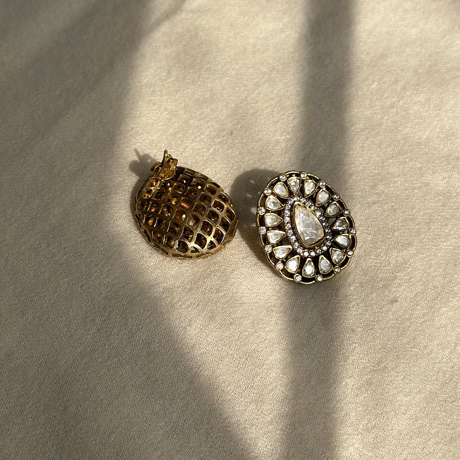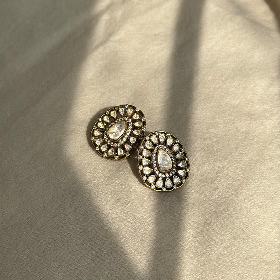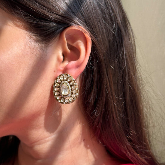 Make a statement with Victorian elegance. These classic studs, adorned with Moissanite Polki and Swarovski gemstones, are perfect for every occasion.