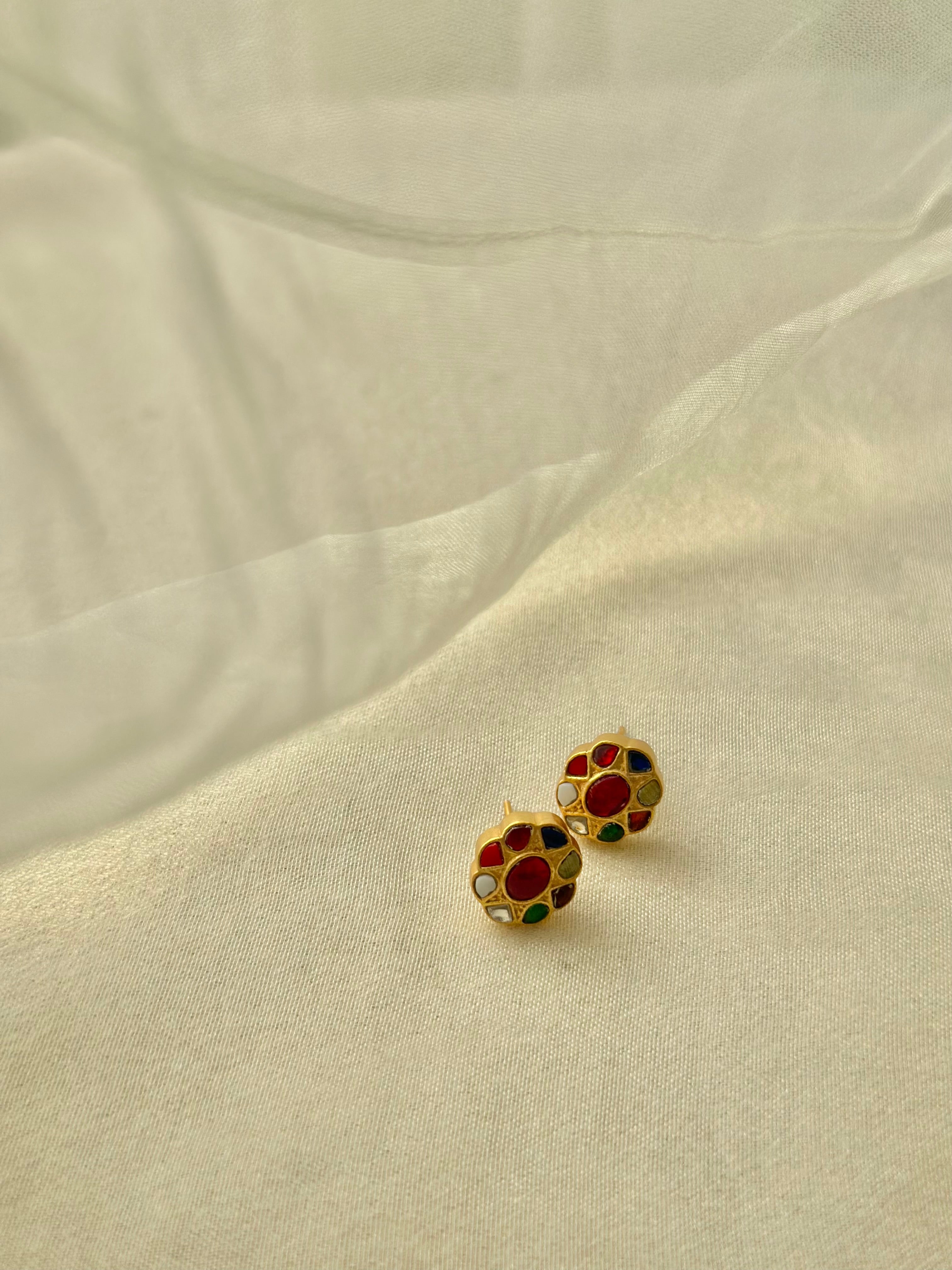 92.5 Silver Navratna Earrings – Gold Plated with Swarovski CZ