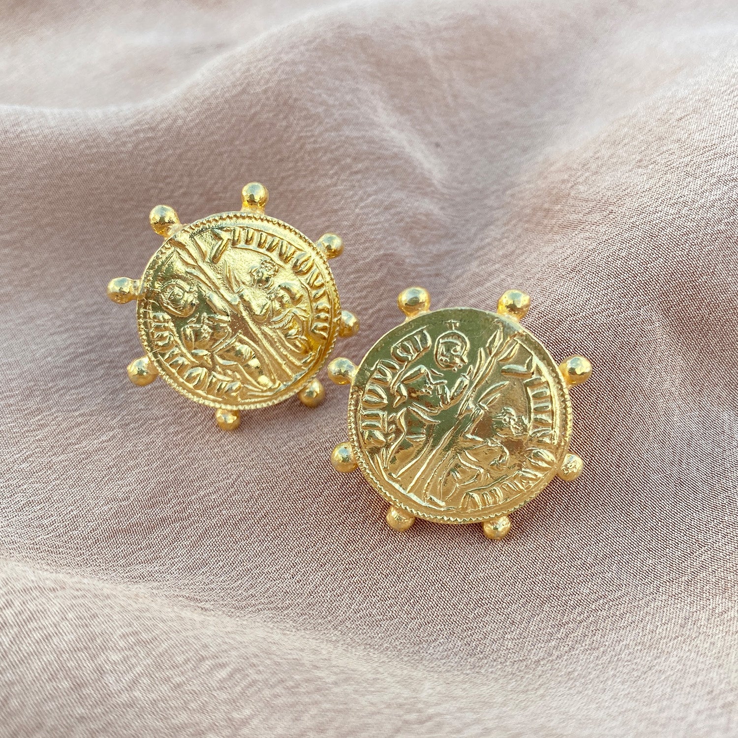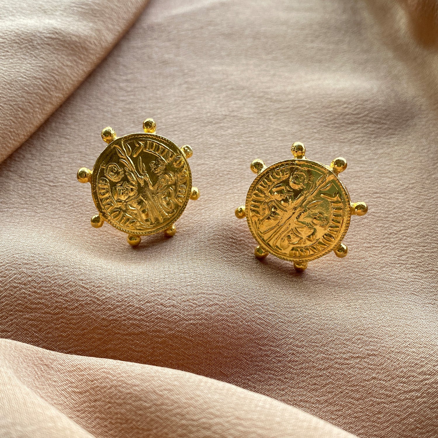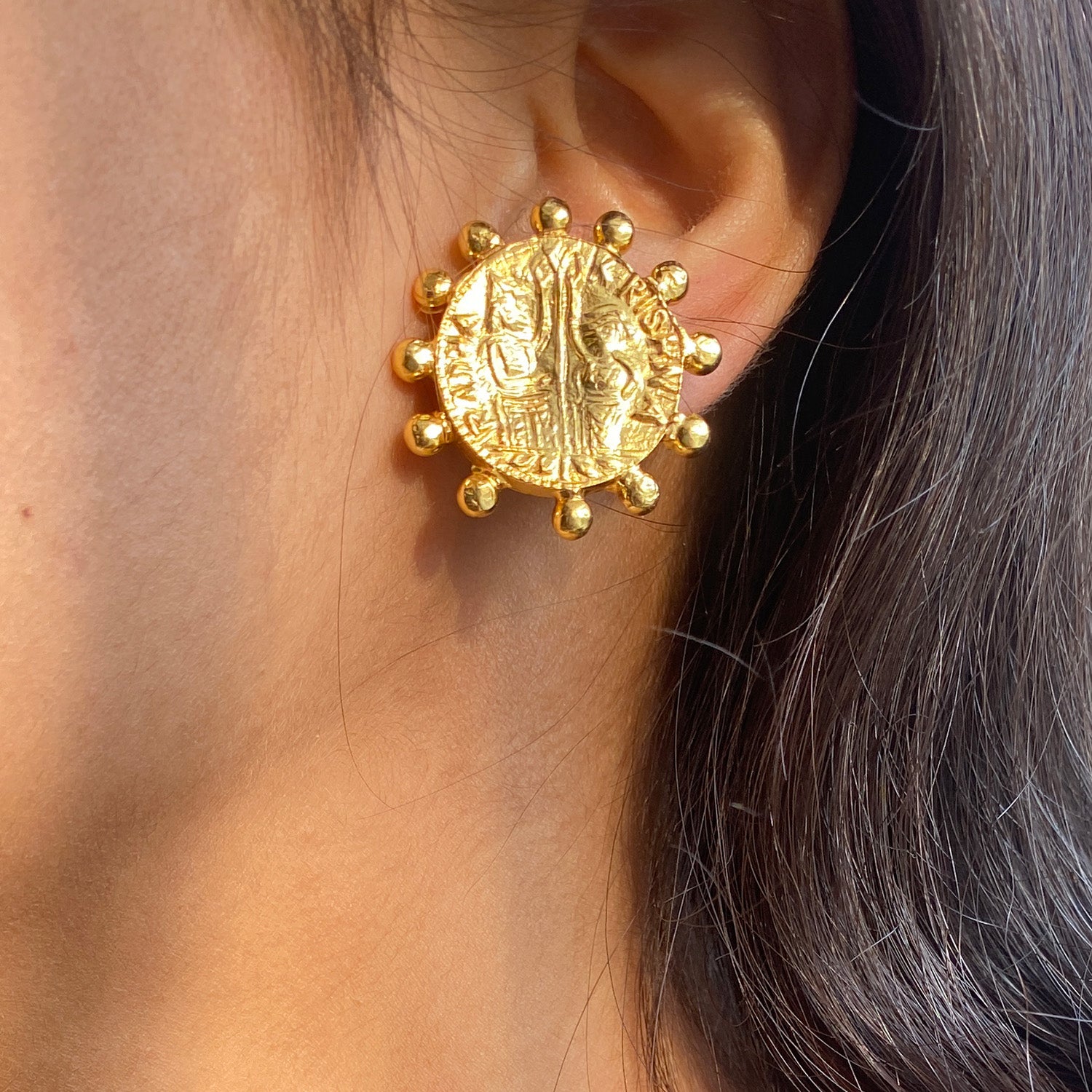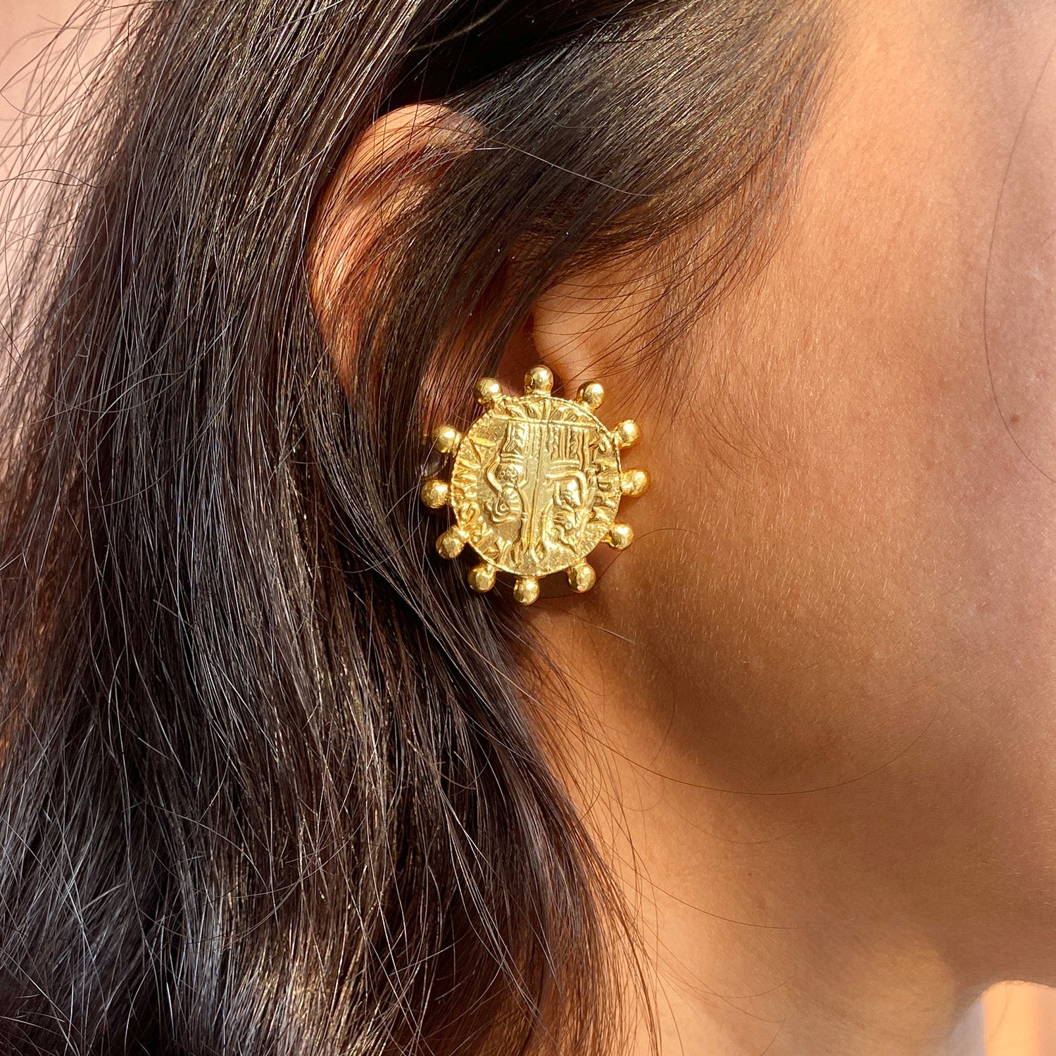 Measuring 2.3 cm in diameter, these earrings are perfect for everyday grace or spiritual occasions. The design is inspired by a century-old motif, preserved and brought to life by skilled artisans in Jaipur, the heart of traditional Indian jewelry-making.