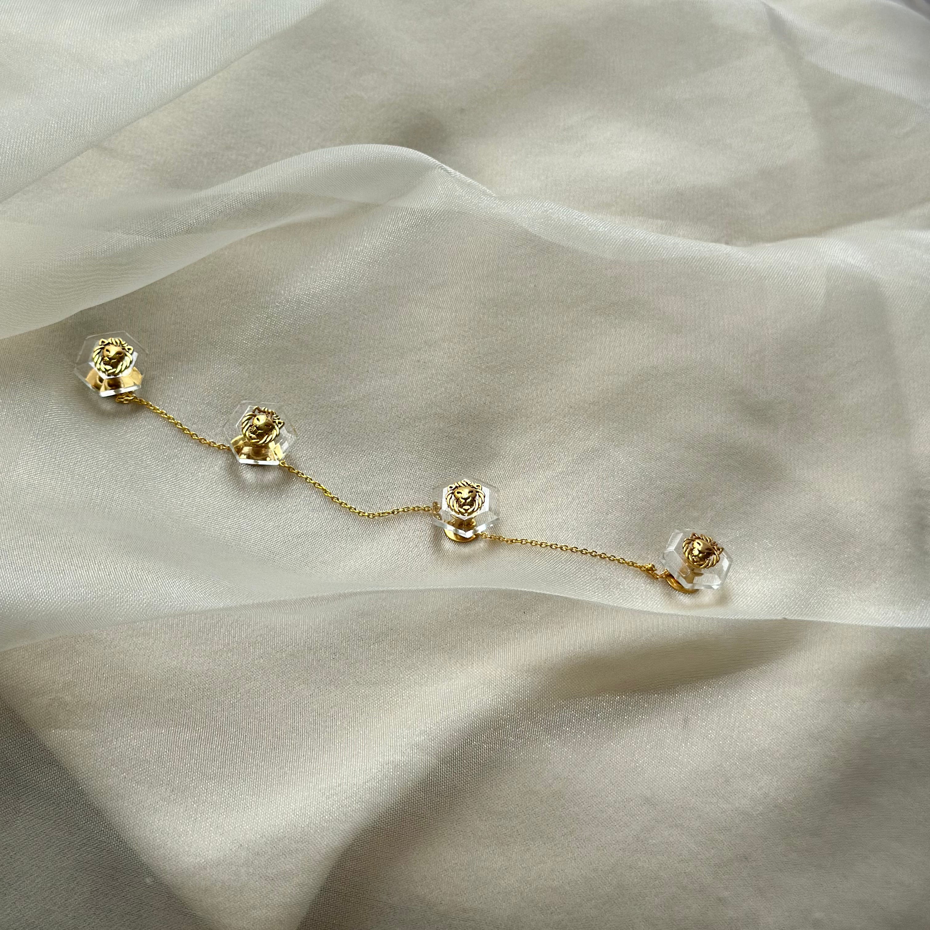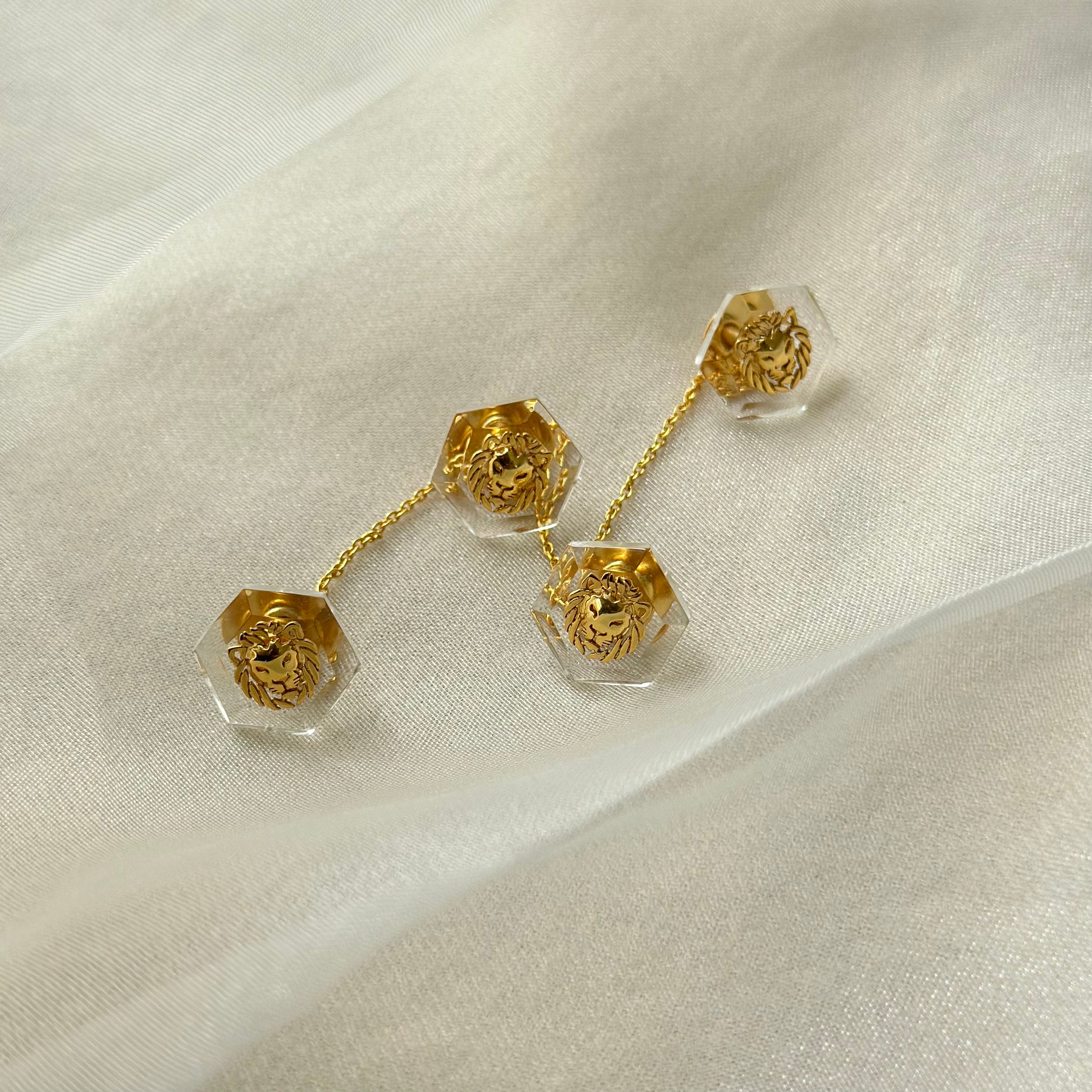 Handcrafted in hallmarked 925 silver and finished with luxurious gold plating, this set of 4 OG Lion Kurta Buttons is designed to command attention with quiet authority. Featuring intricate fine detailing, each button showcases a majestic lion emblem (11mm) alongside a radiant 17mm clear quartz gemstone—known for clarity, strength, and balance.