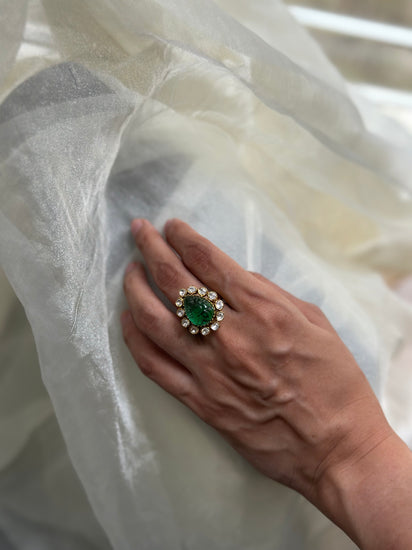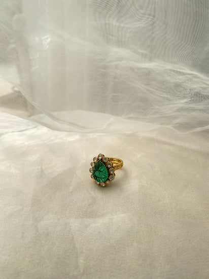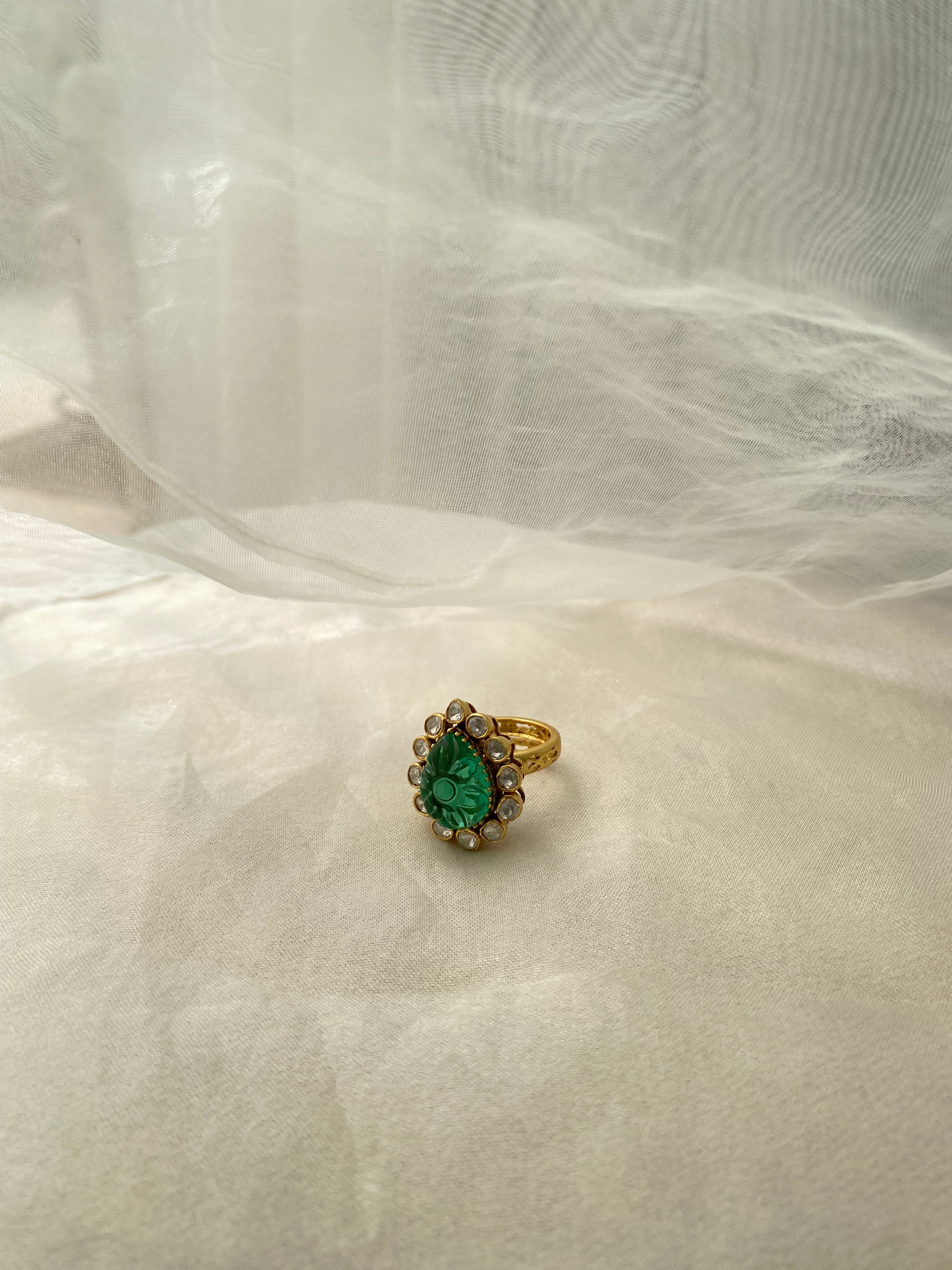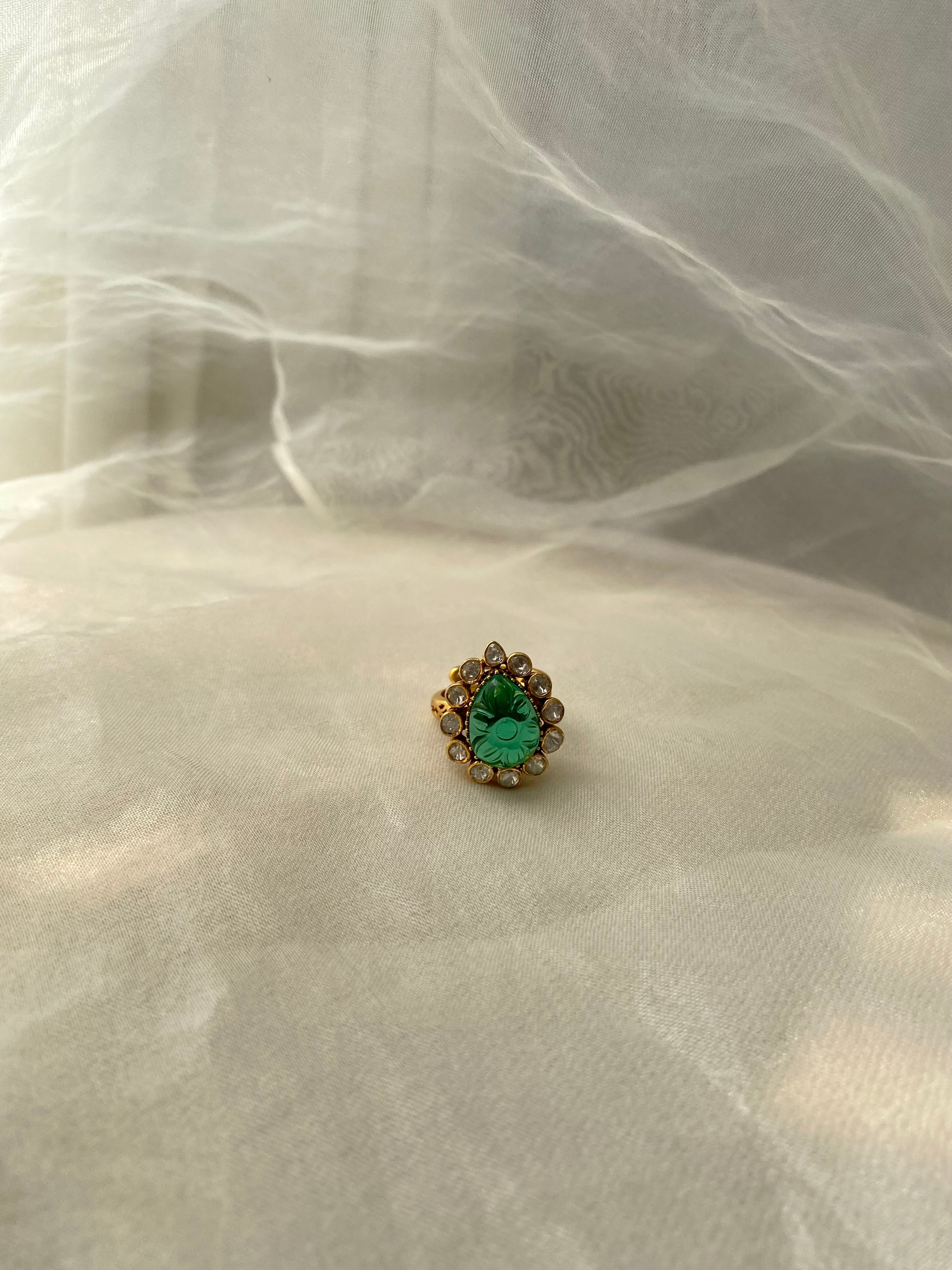 - Gemstones: Moissanite Polki & Carved Green Onyx
