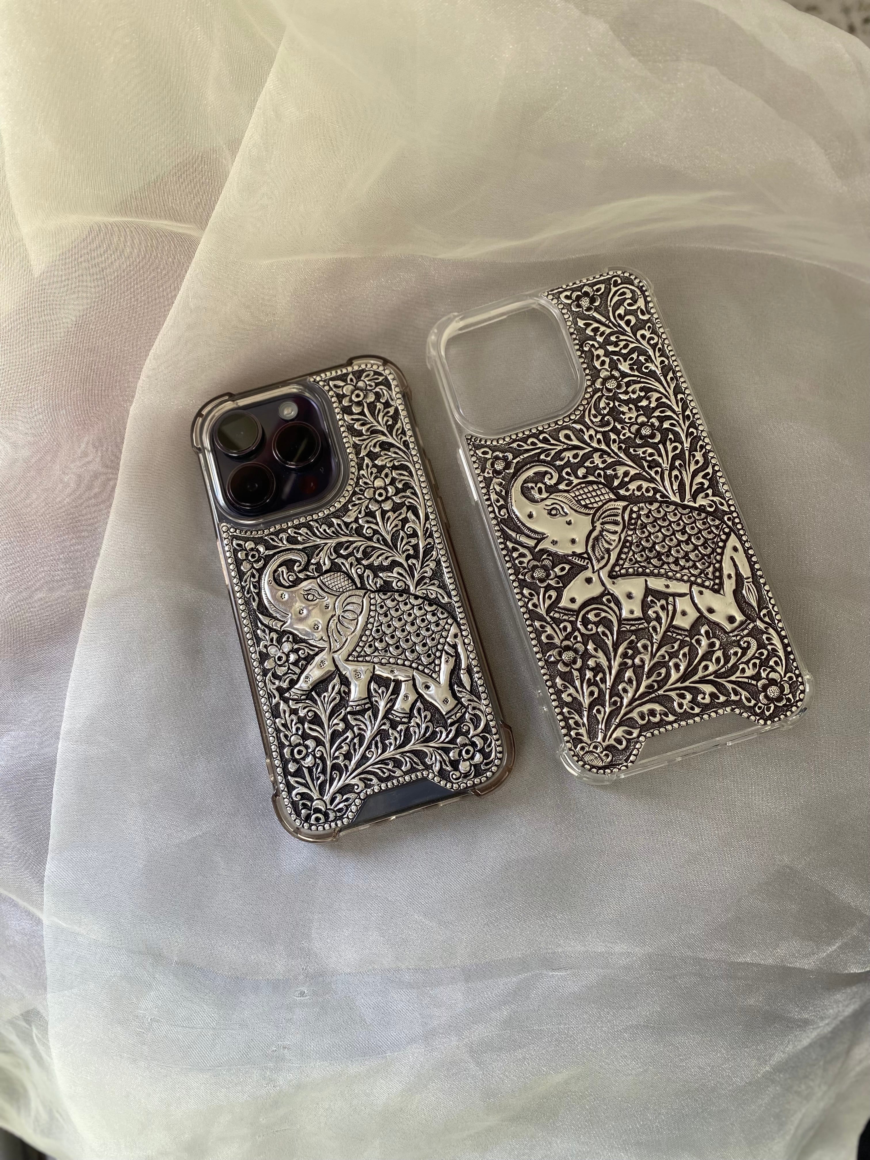 Crafted in hallmarked 92.5 fine silver, the OG Eterno Haathi Phone Cover blends luxury with functionality. Featuring our signature Eterno elephant motif, this handcrafted case offers durable protection while adding a refined touch of heritage design to your everyday carry.