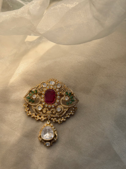 Moissanite, Swarovski CZ, Green Onyx, carved Rubelite centre, and a large Moissanite hanging for unmatched sparkle.• Elegant Statement Length: