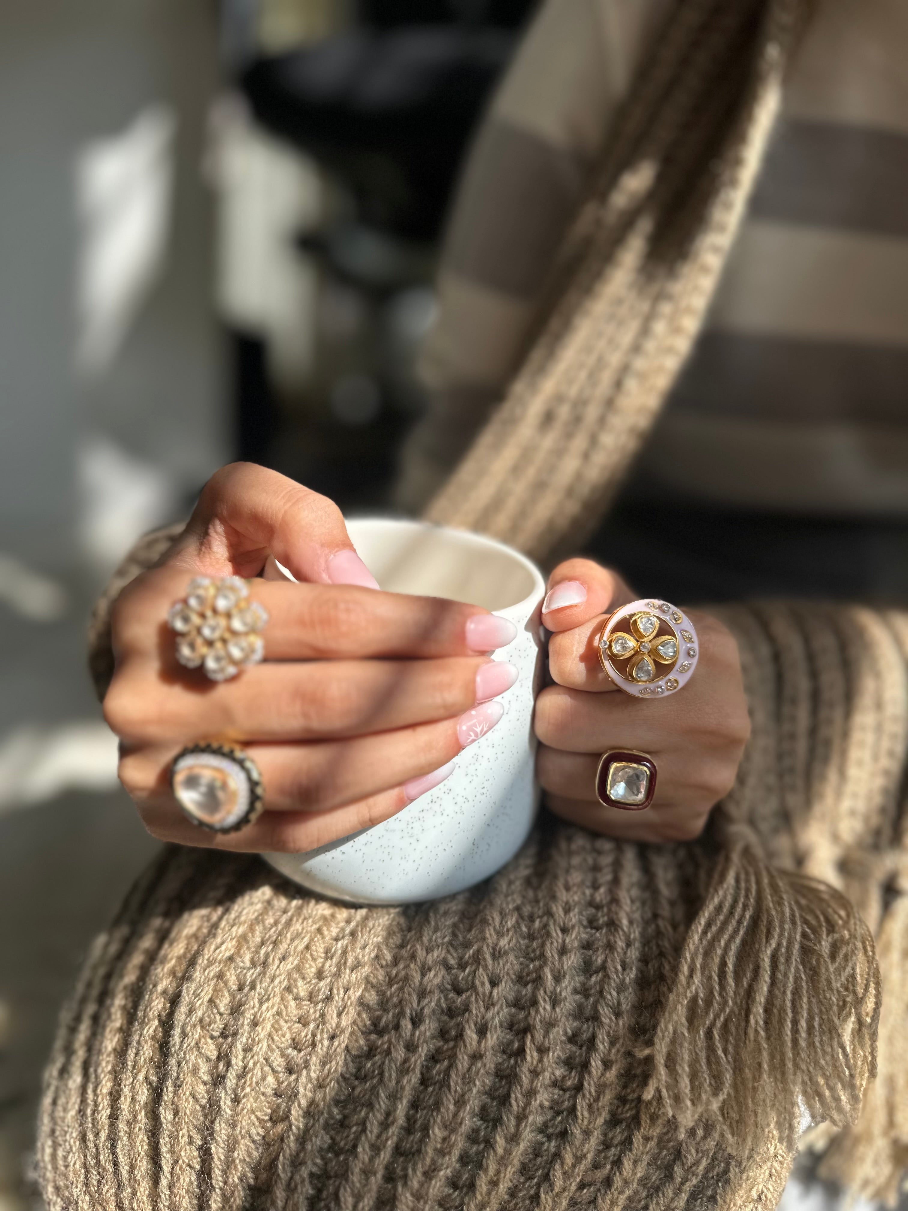 Perfect for pairing with festive outfits, traditional ensembles, or Indo-western styles, this one-of-a-kind ring is the definition of grace with a modern twist.