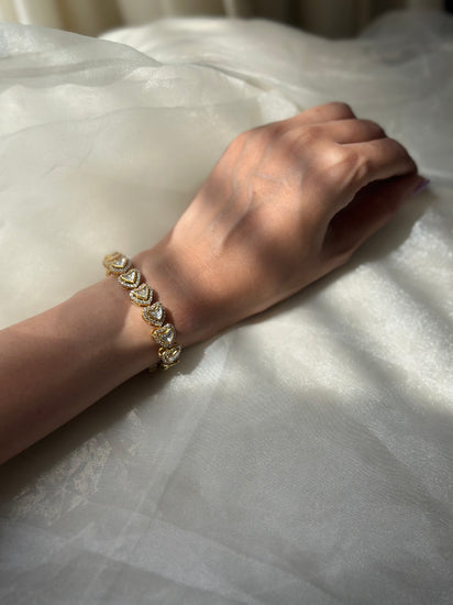 Add a touch of regal sophistication to your look with this luxury Polki & Swarovski bracelet, a perfect gift for yourself or a loved one. Shop now and experience the sparkle of handcrafted excellence.