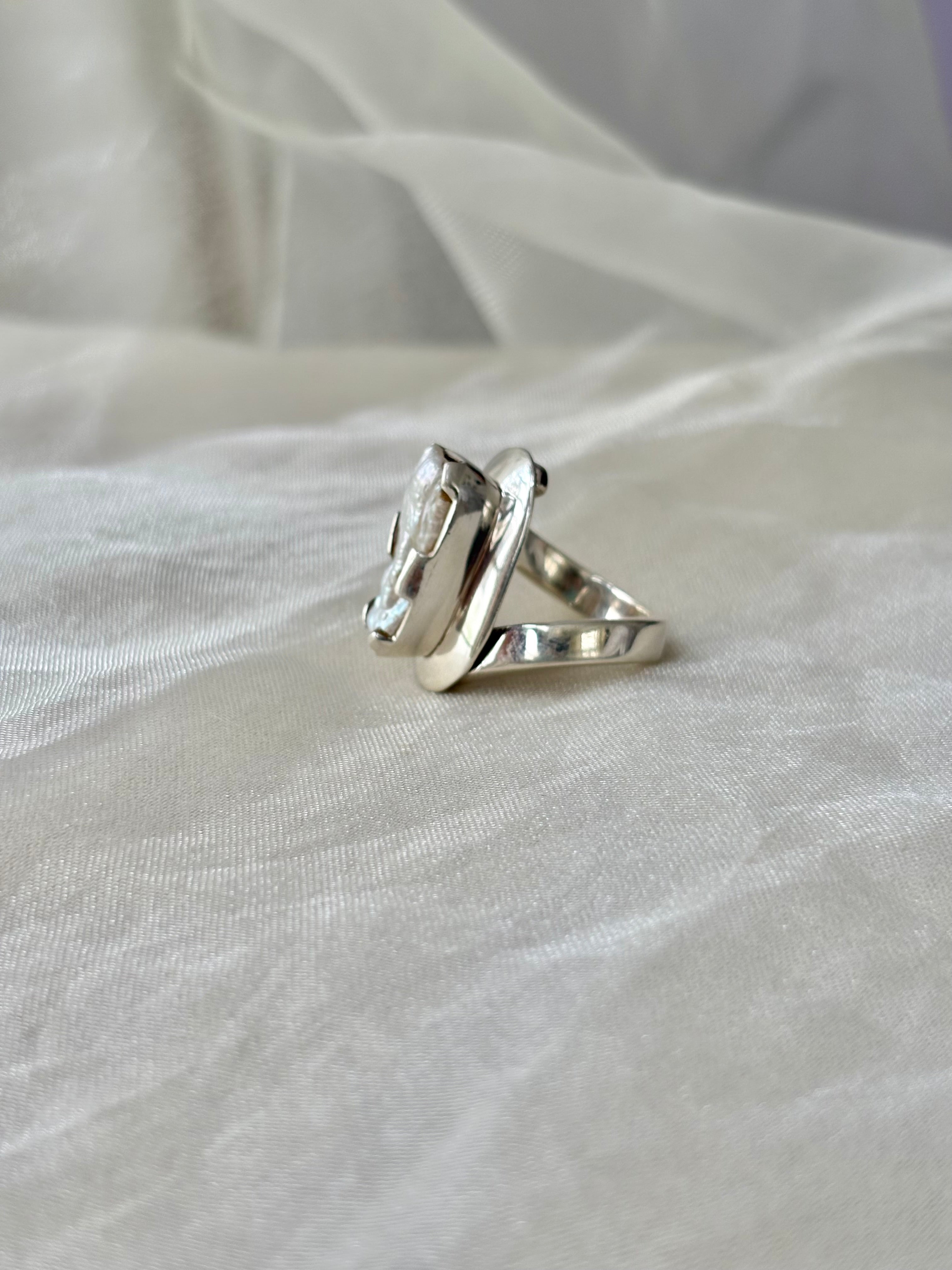 Unique, elegant, and artisanal — this Baroque pearl ring is crafted in 92.5 hallmarked sterling silver, featuring an organic 2.5 cm Baroque pearl element that exudes individuality and timeless charm. Designed in Indian size 19, it’s perfect for those who love bold, statement-making jewelry with a contemporary twist.