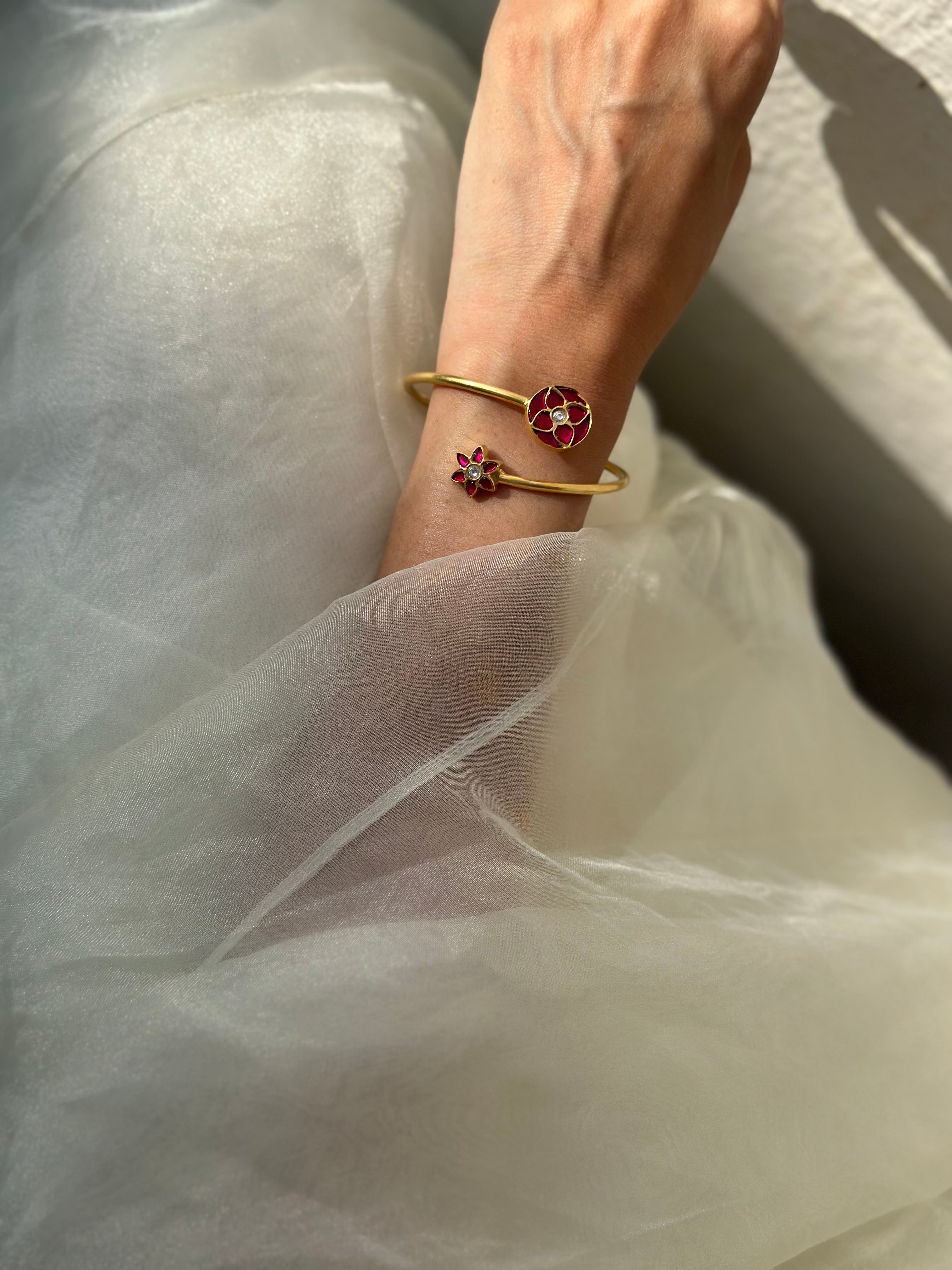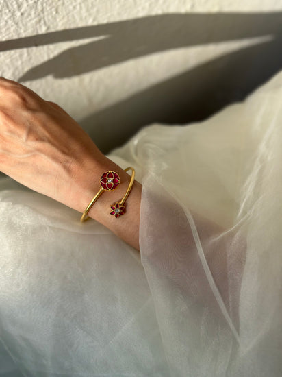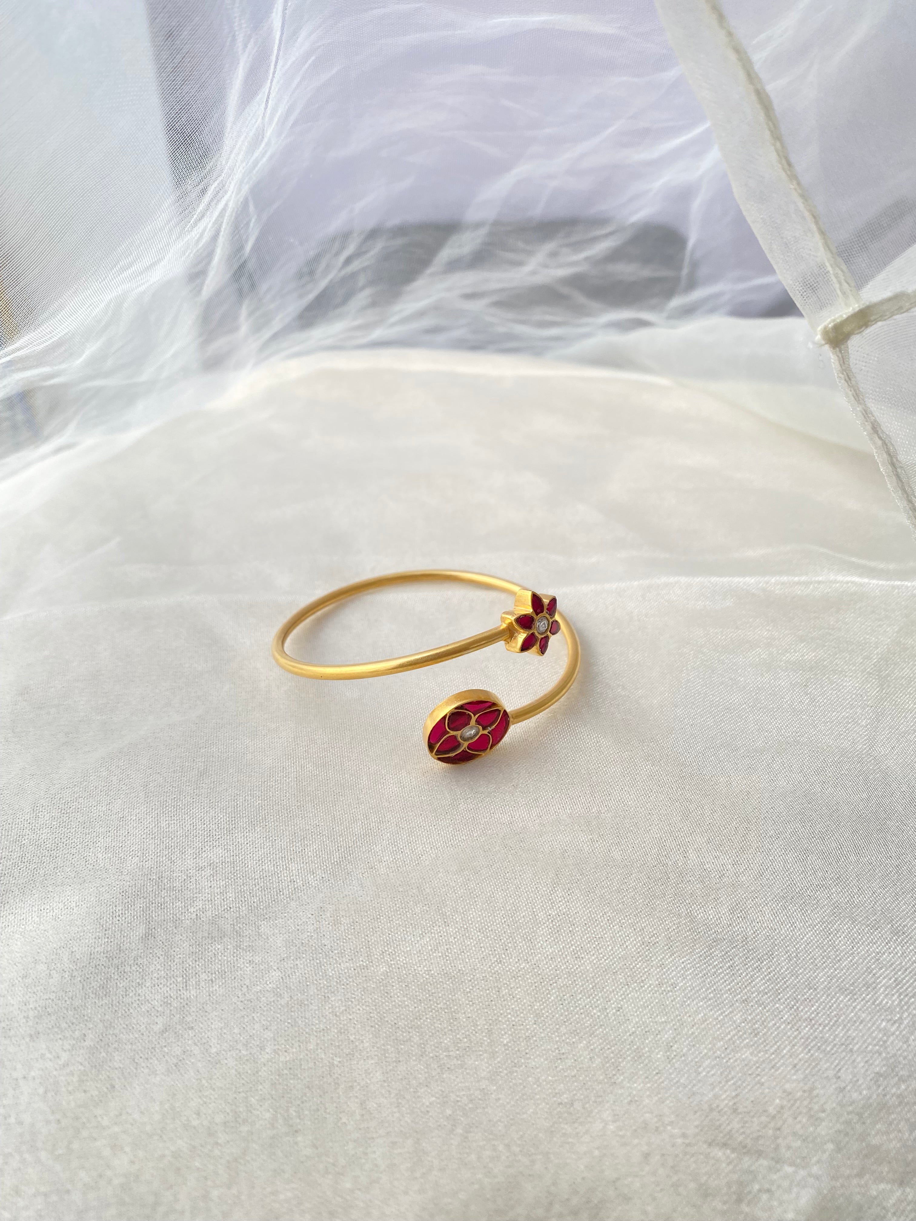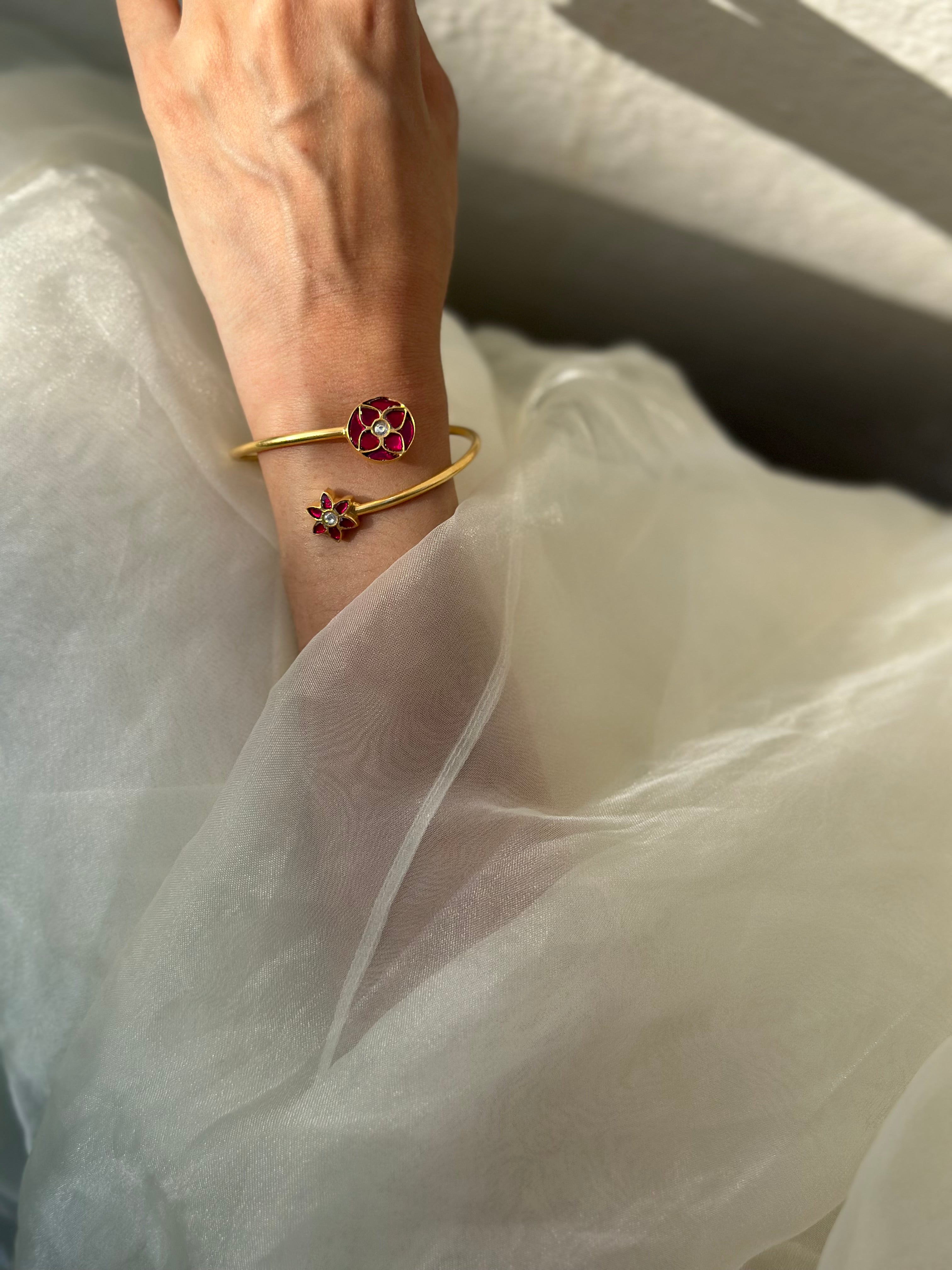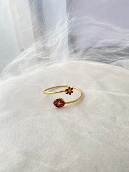 Its adjustable fit makes it versatile and comfortable, while the openable handcuff style ensures effortless wear. Whether paired with festive attire, bridal ensembles, or everyday luxury looks, this piece radiates elegance and craftsmanship.